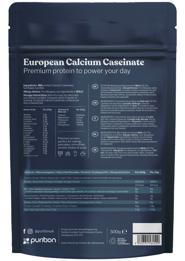 Calcium caseinate is heat-stable, so you can stir it into warm porridge, hot chocolate or a bedtime drink without compromising its benefits. Perfect for a slower-digesting, more comforting source of protein - especially in the evening.
